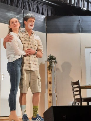 In diesem Jahr hat die Theatergruppe "spät dran" ein sehr aktuelles Thema aufgegriffen. Die Komödie "Homeoffice zu zweit" von Beate Irmisch erzählt die Geschichte des Ehepaares Kunz, das in einer Krise steckt und sich schon anderweitig verliebt hat. Paul (Markus Herzberger) und Monika (Doreen Haupt) erfahren unabhängig voneinander, dass sie wochenlang im Homeoffice arbeiten sollen.
