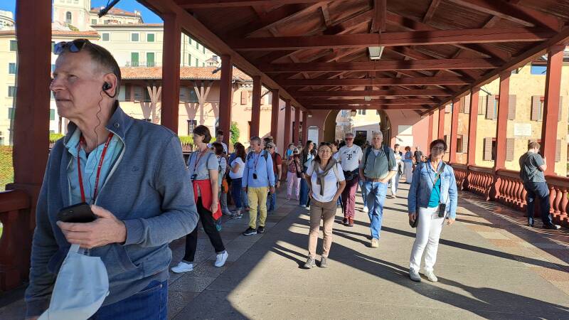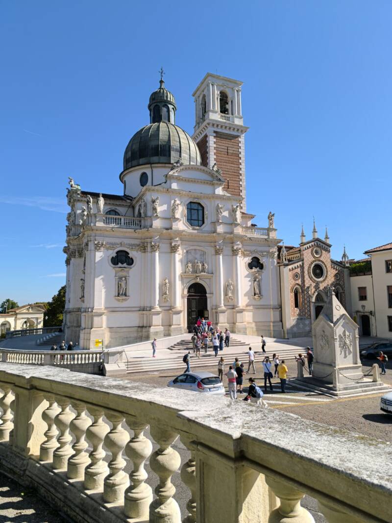 Am zweiten Tag besuchten wir Castelfranco Veneto, das von einer gut erhaltenen Stadtmauer umgeben ist. Weiter fuhren wir nach Asola, eine kleine, aber geschichtsträchtige Stadt in der Lombardei. Auf dem Hauptplatz mit seinen Arkaden, Cafés und der beeindruckenden Kathedrale genossen wir das authentische italienische Flair. Natürlich haben wir wieder in der Kathedrale gesungen. Nach einer Besichtigung der Villa Barbaro in Maser mit ihren berühmten Fresken freuten wir uns nach einer konzentrierten Chorprobe auf einen entspannten Abend im Hotel mit Wein, Prosecco und Bier aus der Region.